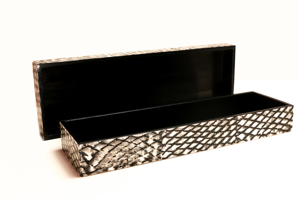 Erick Stocker is a master artisan specializing in the decorative arts with exceptional precision and craftsmanship. He works with lacquer and gilding, using traditional techniques that require patience and expertise, while constantly exploring new materials and textures. His refined skills also include: Leatherwork using lambskin and rare leathers such as stingray and carp, eggshell inlays, straw marquetry with rye straw, and the creation of rich textures that play with contrast and depth. His creations combine ancestral techniques with a contemporary artistic vision, resulting in unique pieces with a distinctive and elegant style.